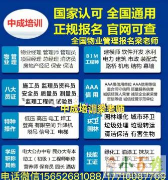 物业经理报名电话微信18800162207,18311352343,QQ1277366319联系人找中成培训郭老师物业经理证上岗证1200物业项目经理1400物业管理员950物业管理师高级1500,中...